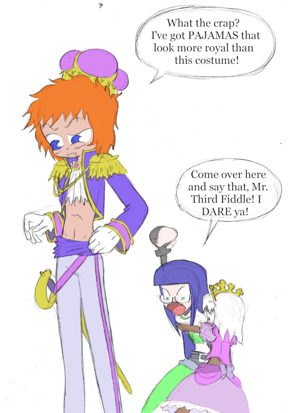 (Historical Notes: Okay, not only are we back to the perspective problems here, but the coloring actually makes it worse SPECIFICALLY because I seemed to forget what I was doing down where Jenna’s dress and Disonar’s boot meet. Really, the[…]↓ Read the rest of this entry…