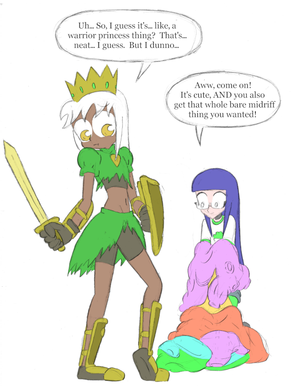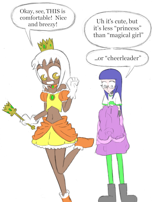 (Historical Notes: Tabitha should also have mentioned that it’s blatantly Princess Daisy, but with a midriff, because that’s so obviously what’s going on here. That said, I still like how Jenna is, in her own way, somehow more willful than[…]↓ Read the rest of this entry…