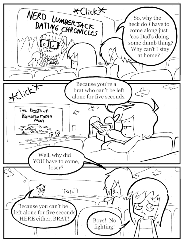 I want a theater with a remote control. I’d fast forwards through SOOOO much. (Historical Notes: In the earliest, EARLIEST days of me jotting down ideas for Far Out There, I was going to have a little thing called “Bananarama[…]↓ Read the rest of this entry…